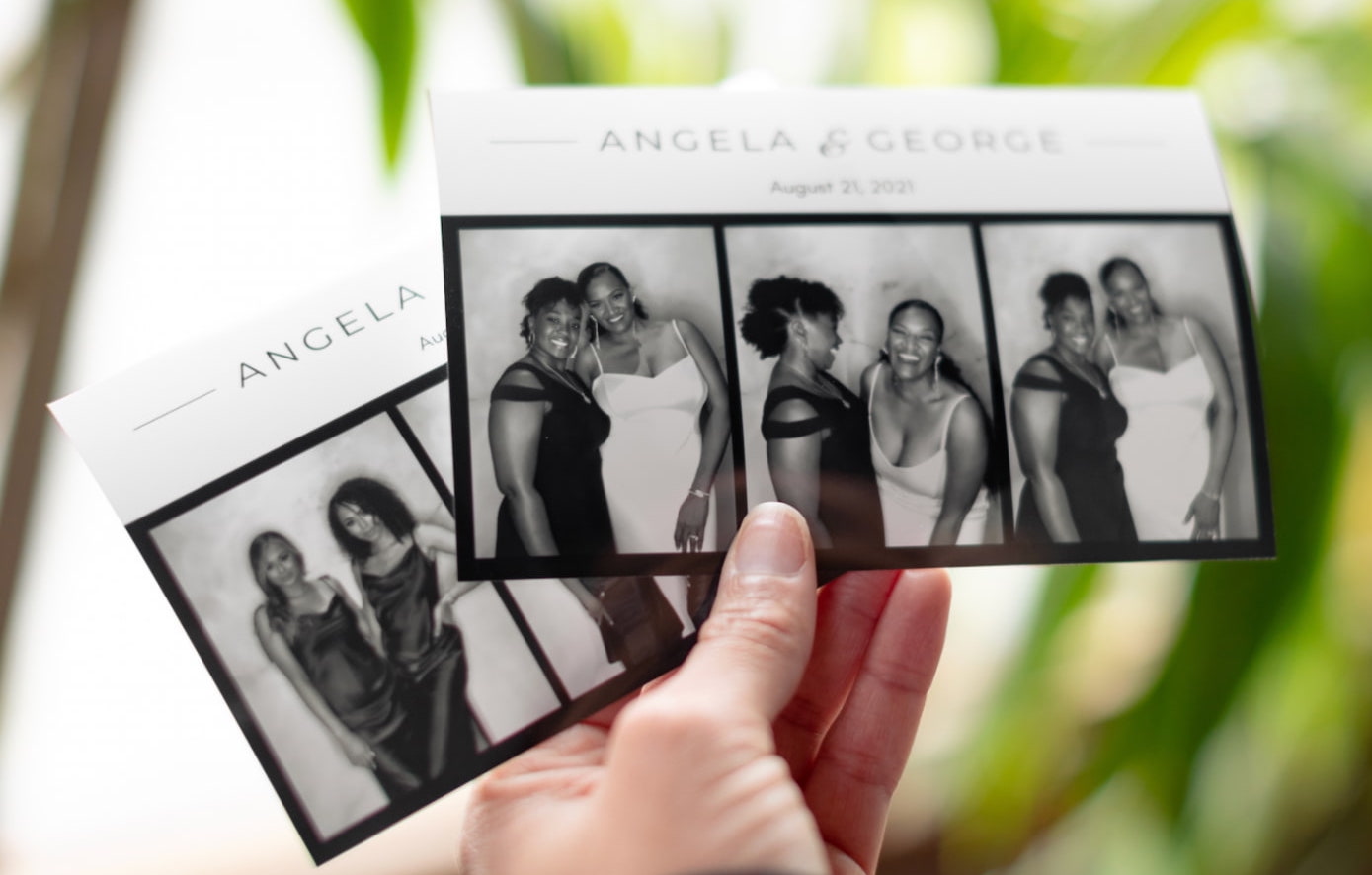 Everyone gets a print! Whether you love the classic 2x6 print strips or the larger, premium 4x6 prints, either option is included in our packages! Also we can do pretty much any design you dream of! Our in-house graphic designer will craft a custom framed print to match perfectly with your theme and style.